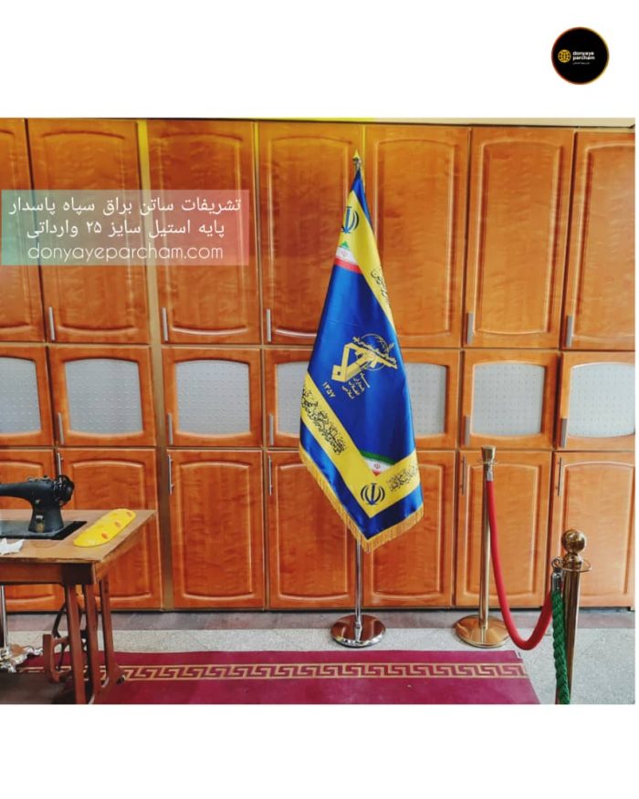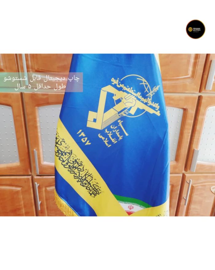پرچم تشریفات سپاه با استفاده از پارچه مرغوب سوپر ساتن براق کره ای و چاپ دیجیتال ساخته شده است.