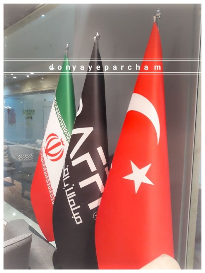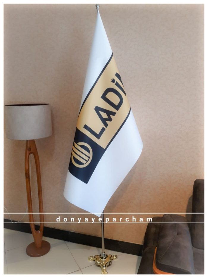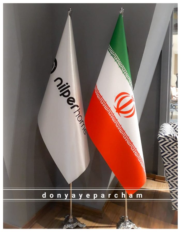 این پرچم سالنی بدون جای دوخت و به صورت برش دور لیزر می باشد. همچنین یک ورقه لمینت قسمت پشت پرچم نصب شده تا به صورت مخروطی روی میله به نمایش درآید.